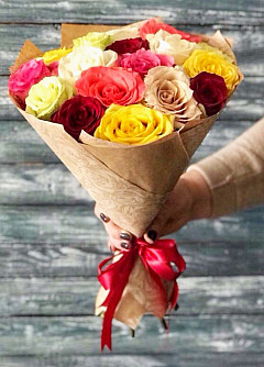В мире не существует вещей ярче и веселее, чем букет из роз нескольких цветов. Тут и нежный белый, и влюбленный красный, и веселый желтый, и заботливый розовый. Цветы повысят настроение близкого человека, подарят множество эмоций и надолго запомнятся. Подарить разноцветные розы можно любимой или друзьям, а наградой будет радостный и благодарный взгляд.